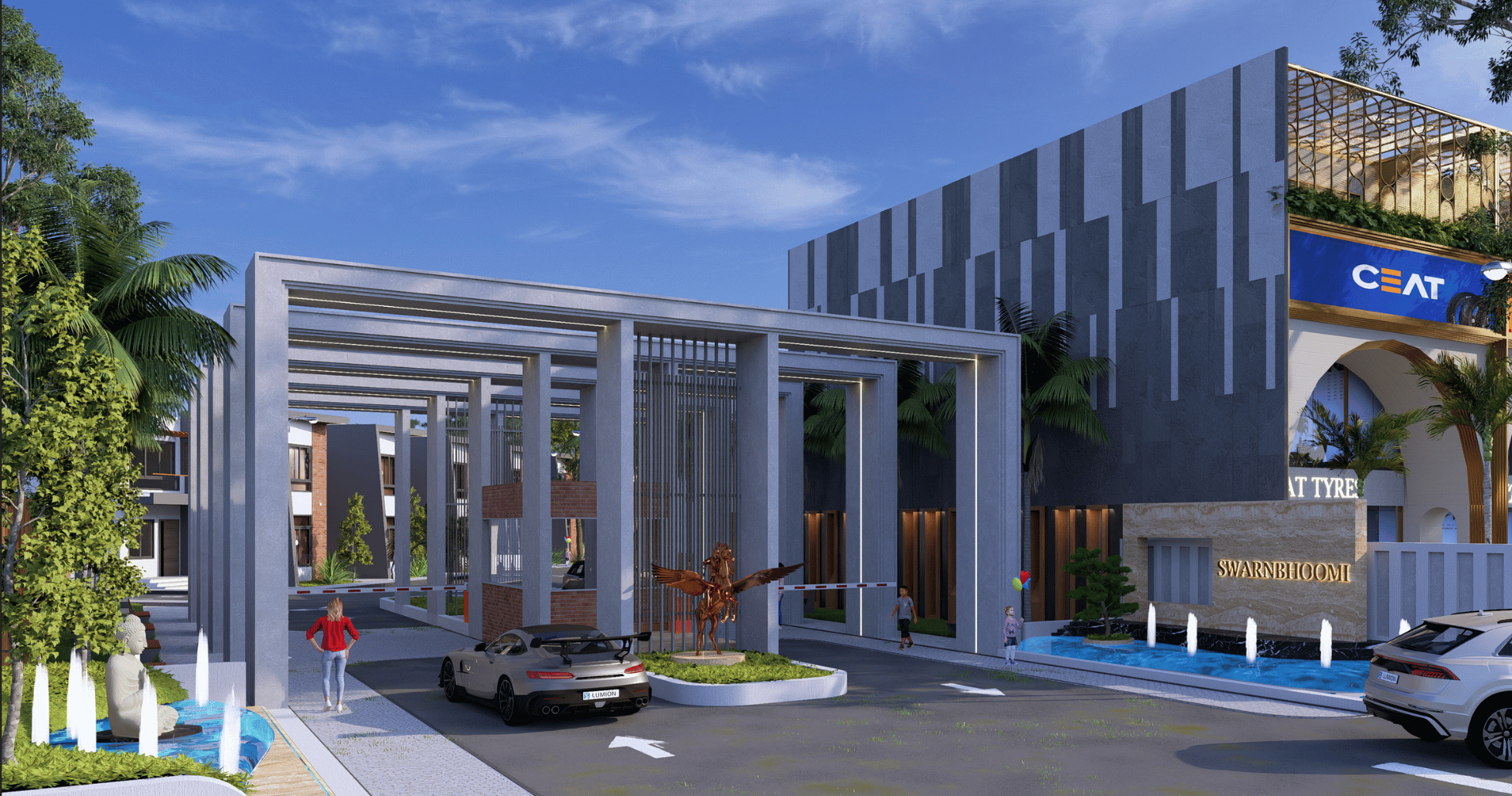 Take a stroll through lush green plantations, surrounded by well-lit streets that make walking through Swarnabhoomi both scenic and safe.